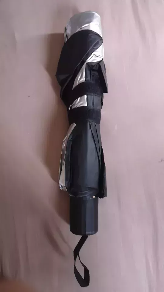 Materials: High-quality titanium silver adhesive and umbrella cloth Weight: 600 g Available Sizes: Medium (125 x 65 cm) and Large (145 x 79 cm) Color: Sleek Black