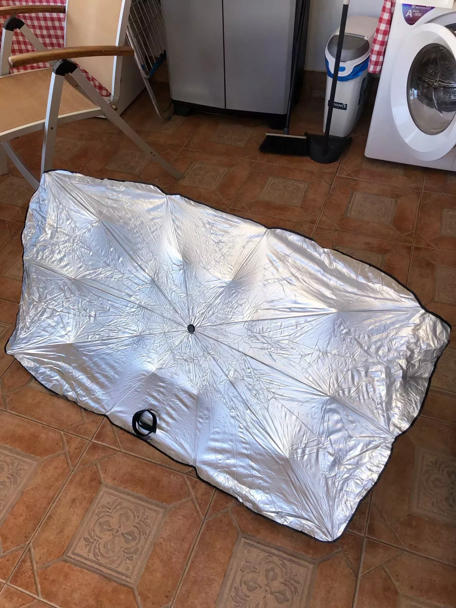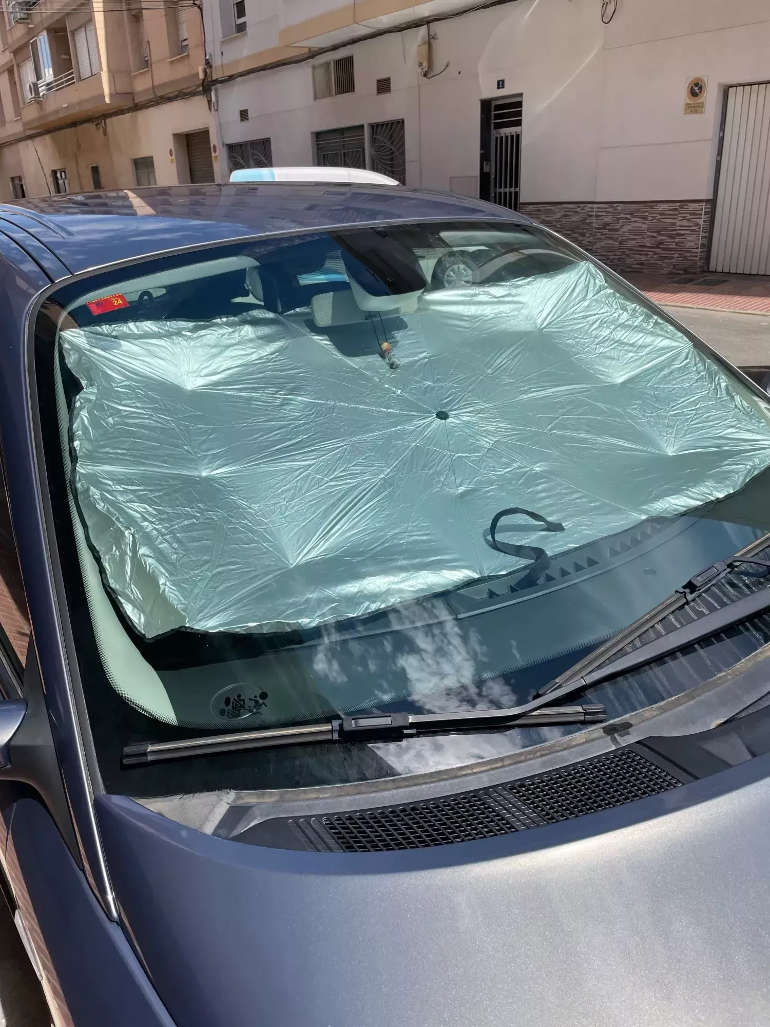 It's like a mini umbrella for your dashboard. More efficient than cardboard shields and ideal for sunny places. Got one for my son in Germany too