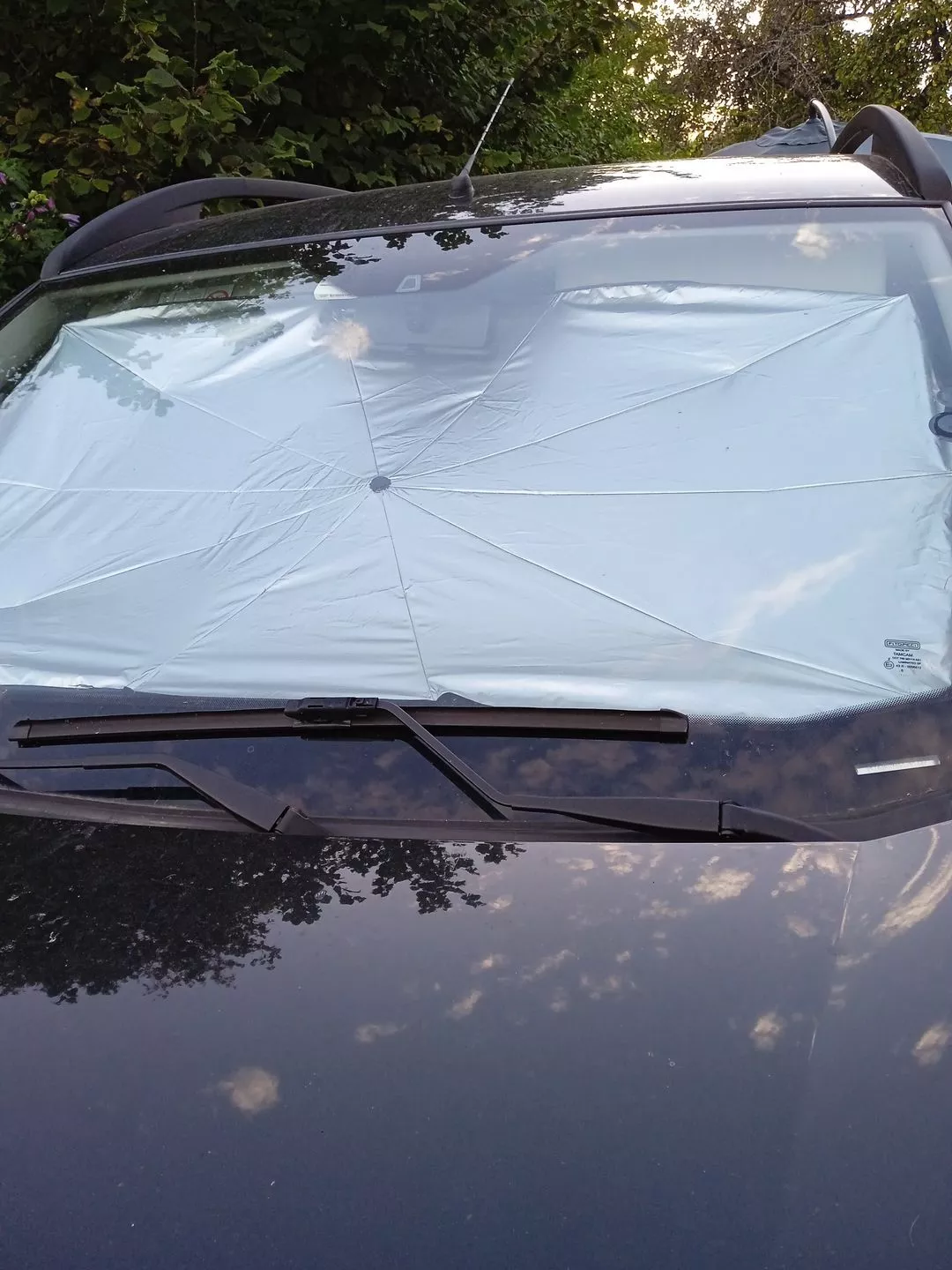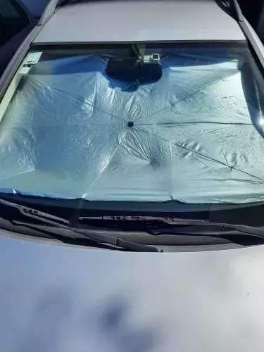 I'm so glad I got this umbrella-like sun shield. It's much easier to use than my old accordion-style one. It makes a big difference in my car when parked in the sun, and it's a great price.