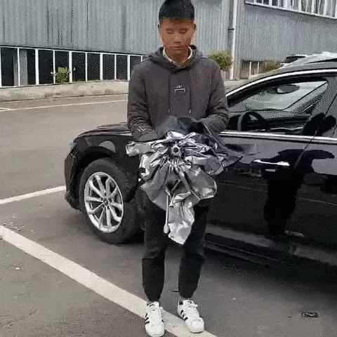 - Dual Functionality: Heat and Sun Shield: Utilizing premium aluminum material, the umbrella blocks heat and reflects sunlight. This dual action reduces interior temperature, preventing damage and aging of your car’s interior.
