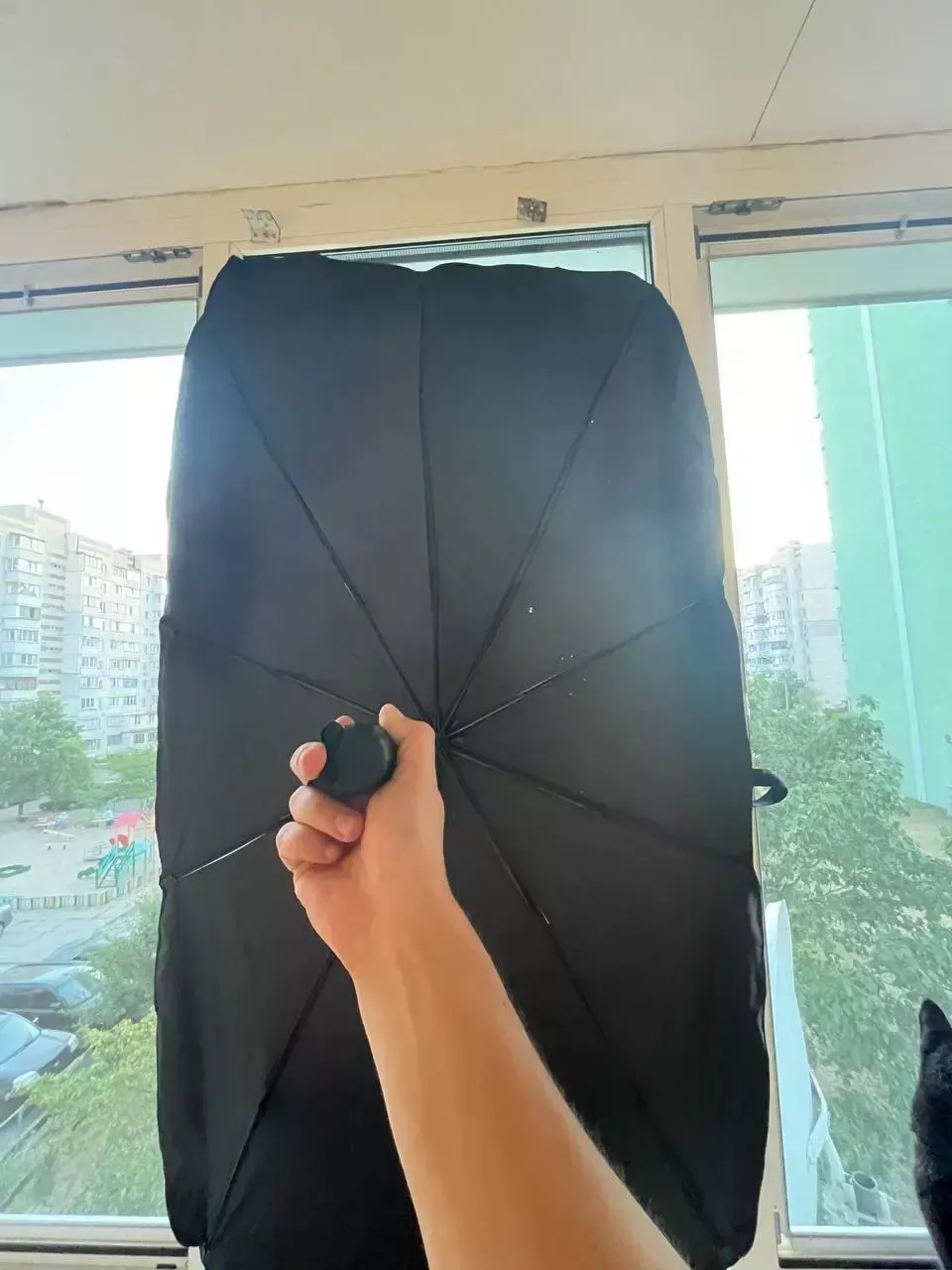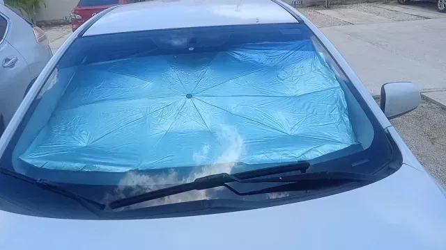 I live in a really hot state, and this thing is amazing! I love that it comes in different sizes. The big one is perfect for my van, and I got a smaller one for my parents. It keeps the car cooler and is easy to close. It also works as an emergency umbrella, fitting multiple people under it.