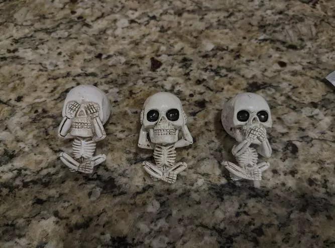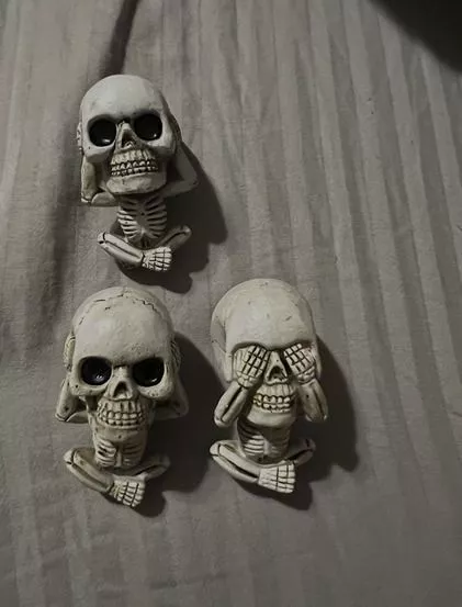 Our exclusive Skull Sculptures Set, featuring the ‘See Nothing, Say Nothing, Hear Nothing’ skulls, is a creative take on the classic proverb. This set, made of high-quality resin, offers a unique and artistic expression for skull enthusiasts and makes a striking addition to any space.