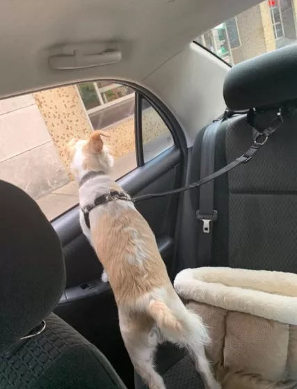 I love this. I just adopted a 3 year old mix breed. He wants to be on my lap at all times. This isn’t safe when I drive so we now have a system. He gets in the backseat. I put his harness on and hook it to his “seat belt”. This goes securely around the headrest and keeps him in the backseat. It also keeps him safe from sudden stops. Last week while driving an old 2 lane highway a truck in oncoming traffic decided he was going to pass. The problem was that I was in my lane and he was heading straight for me. I had no where to go. I slammed on my brakes which allowed him the extra second to get back on his side of the road. Since Murphy had his harness and belt on he was safe and secure in his seat. Remember, DO NOT CONNECT THIS TO YOUR DOG’S COLLAR. ALWAYS USE SOME SORT OF HARNESS!!!