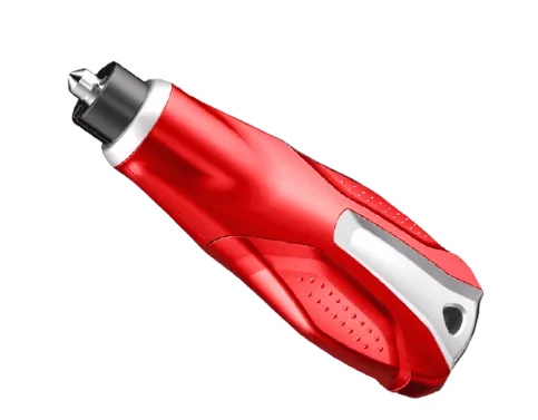 But we’re talking about exiting a vehicle after a car crash or emergency situation. Because every second counts. This sleek aluminum tip helps you break down window glass quickly.