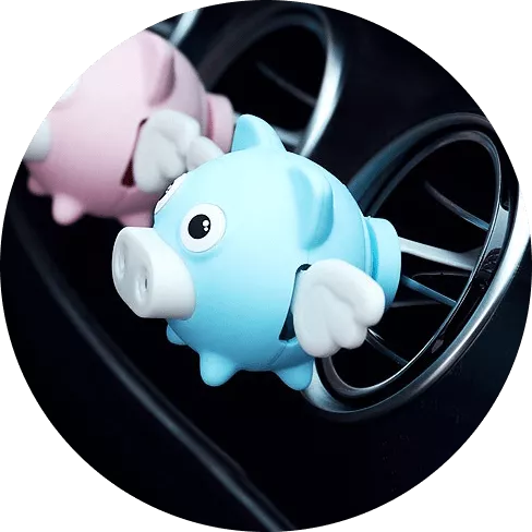 Add charm with cool-blue piggy that can brighten up any dark or serious car interior of greys and blacks while freshening up the air.