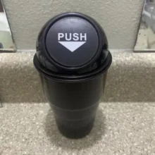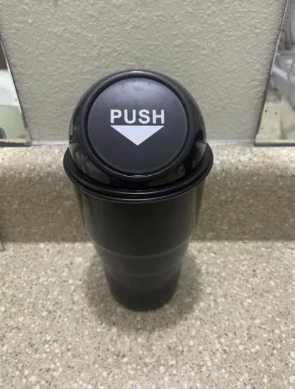 Fits well in the car door slot. Perfect for fast food receipts parking garage tickets and other small trash. Forces you to empty it out because once full you can no longer push the lid.