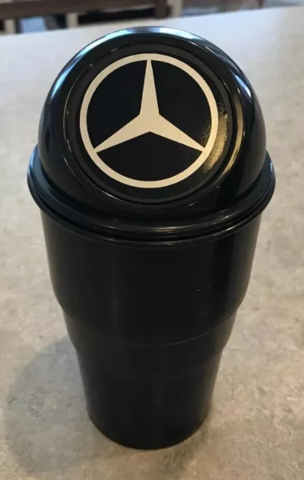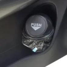 Lovely design. Replaces loose paper, wrappers etc with a sleek trap door trash bin so little messes just do not get started. Didn't know how much I need it before I started. Mine fit in the front or rear door just fine.