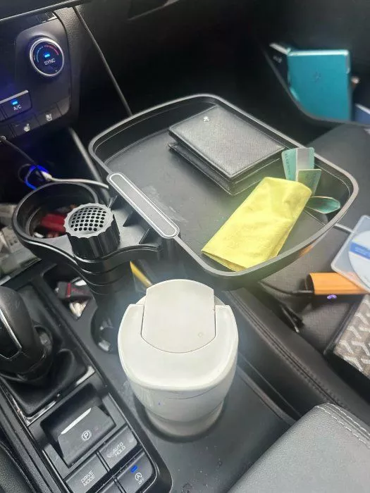 This tray is ideal for anyone who spends a lot of time on the road. It's sturdy and versatile, holding everything I need within easy reach. Highly recommend it