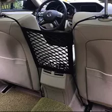 I got this to try and help keep my puppers from jumping in the front seat as soon as I close the door. As you can see from the pictures, there's almost a 6 inch gap on both sides of the net which renders it almost useless for keeping my puppers at bay. I figure that with a normal-sized car or small SUV, the seat gap is not a problem as it is with mine. This product is stretched for all its worth in my truck (Silverado). I got tissue and a can of disinfectant in there, but it's t-i-g-h-t. I'm going to use it until it snaps, which looks like it could happen at any moment, honestly. I just hope it doesn't hit me in the process. With the small size out of the way, it was still easy to install and I don't feel like the hooks would come loose on their own. I think this would work great on something smaller, but it definitely is not made for what I drive.