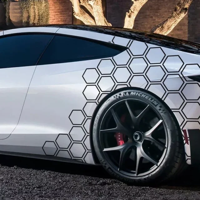 Aside from their standout design, our Honeycomb Car Graphics Decals are incredibly user-friendly. The high-quality adhesive ensures they stick where you put them, and their flexibility allows for a perfect fit on the contours of your vehicle. Plus, their unique honeycomb pattern adds a modern, sporty look that’s sure to impress.