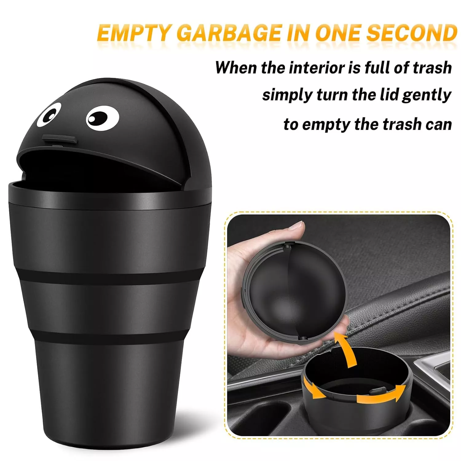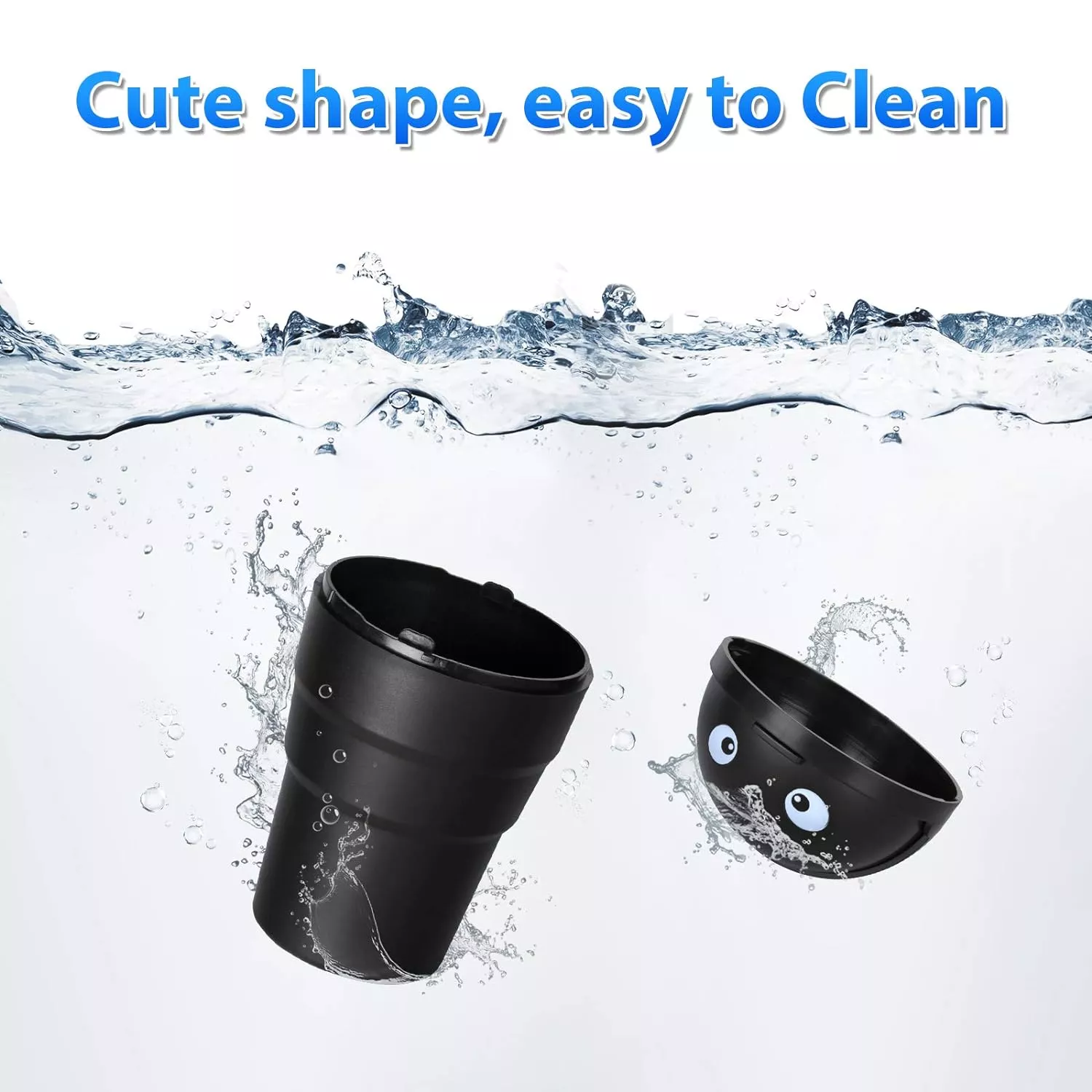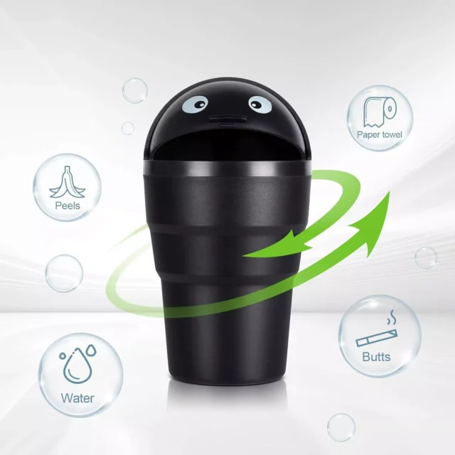 Adorned with captivating eyes, this tiny trashcan is a charming addition to any cup holder, ideal for disposing of small rubbish like receipts or tissues. Its design ensures easy maintenance and cleaning.