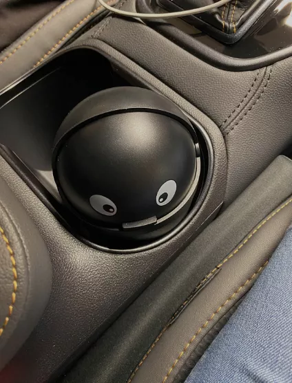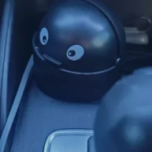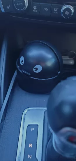 Having recently acquired a new car, I was on the lookout for essential accessories, including a compact trash bin for the front. This item is ideal, and its cheerful face brings a bit of joy and satisfaction to my day. It requires manual operation to open and close, which is hardly an inconvenience.