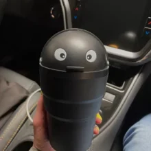 It meets our needs perfectly, fitting snugly in the car's cupholder with a design that's both cute and practical. It's easy to maintain and empty, and I'd recommend it to anyone in search of an affordable and attractive car trash solution.