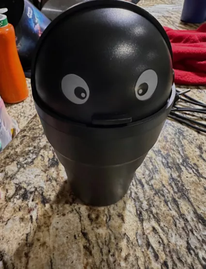 The playful eyes on this bin never fail to entertain me. Currently, it occupies a cup holder, earning a greeting from me each time I enter the car. Despite its sturdy build, I once dropped it, but it was easy to reassemble without any damage. I've affectionately named it and believe in the joy of incorporating whimsical elements into our daily lives, even if it's just a bin with a personality.