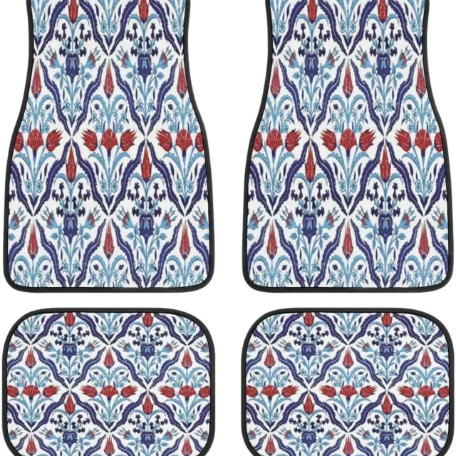 Vintage Persian-Turkish Patterned Car Floor Mats (4-Piece Set)